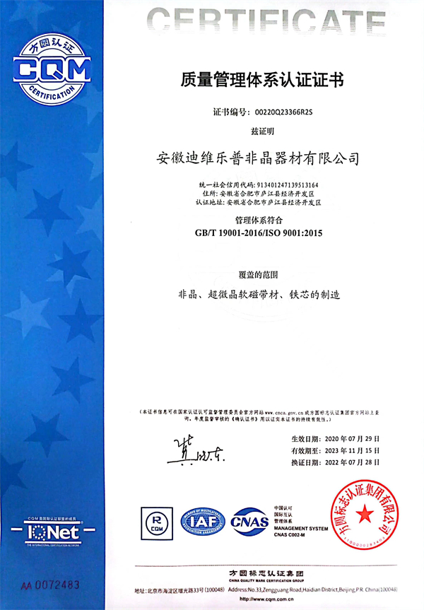 為響應(yīng)國家標(biāo)準(zhǔn)化發(fā)展綱要,推動高質(zhì)量發(fā)展,建設(shè)社會主義現(xiàn)代化國家。 安徽迪維樂普非晶器材有限公司、非晶合金電力互感器材料研究中心;為促進(jìn)標(biāo) 準(zhǔn)化發(fā)展、提升標(biāo)準(zhǔn)化水平;實(shí)現(xiàn)企業(yè)有序發(fā)展、有規(guī)可循;產(chǎn)品質(zhì)量有據(jù)可依、 方便客戶甄別選用,特制定本企業(yè)質(zhì)量標(biāo)準(zhǔn)。